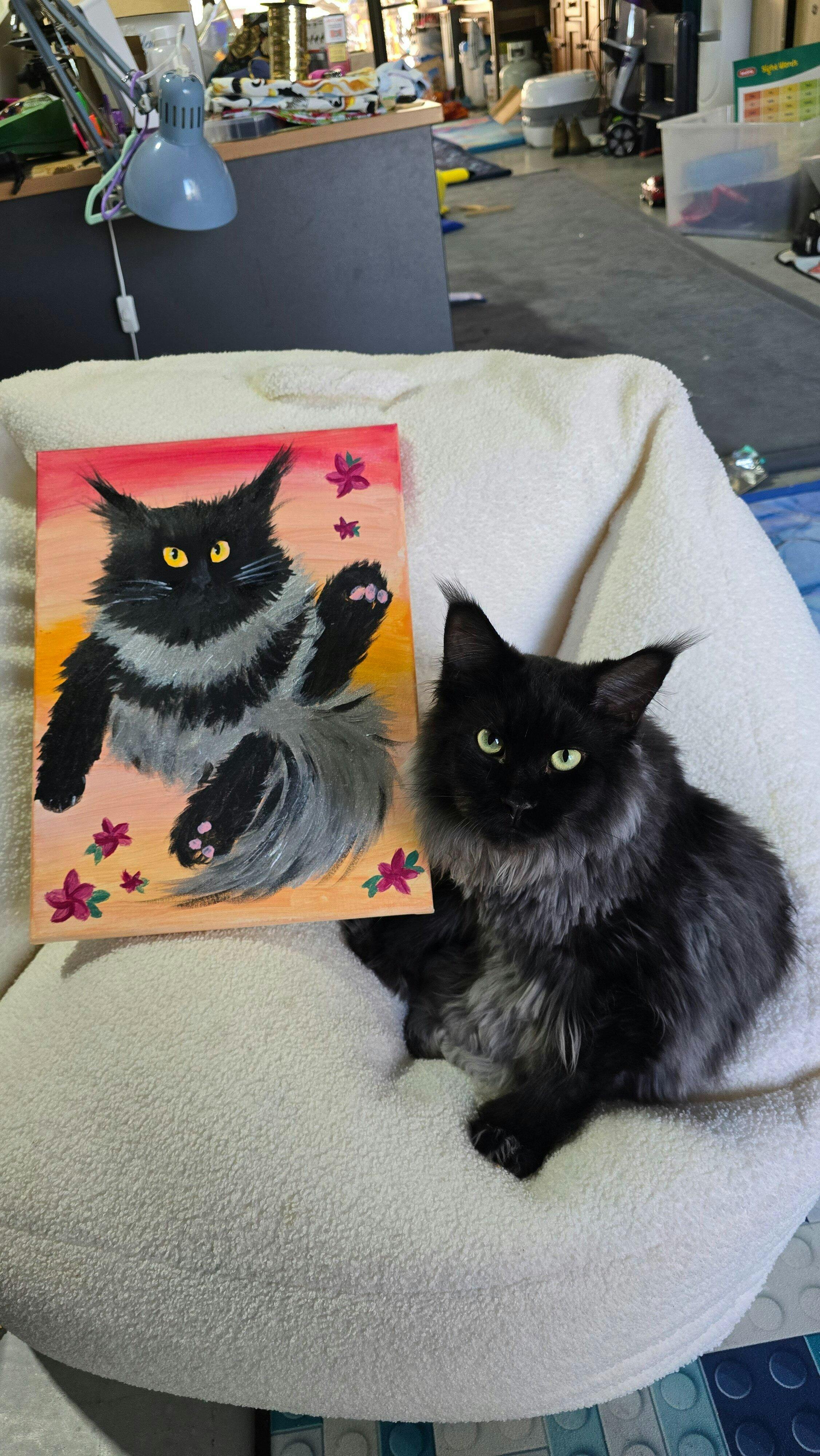 Here's a picture of said cat next to a self portrait