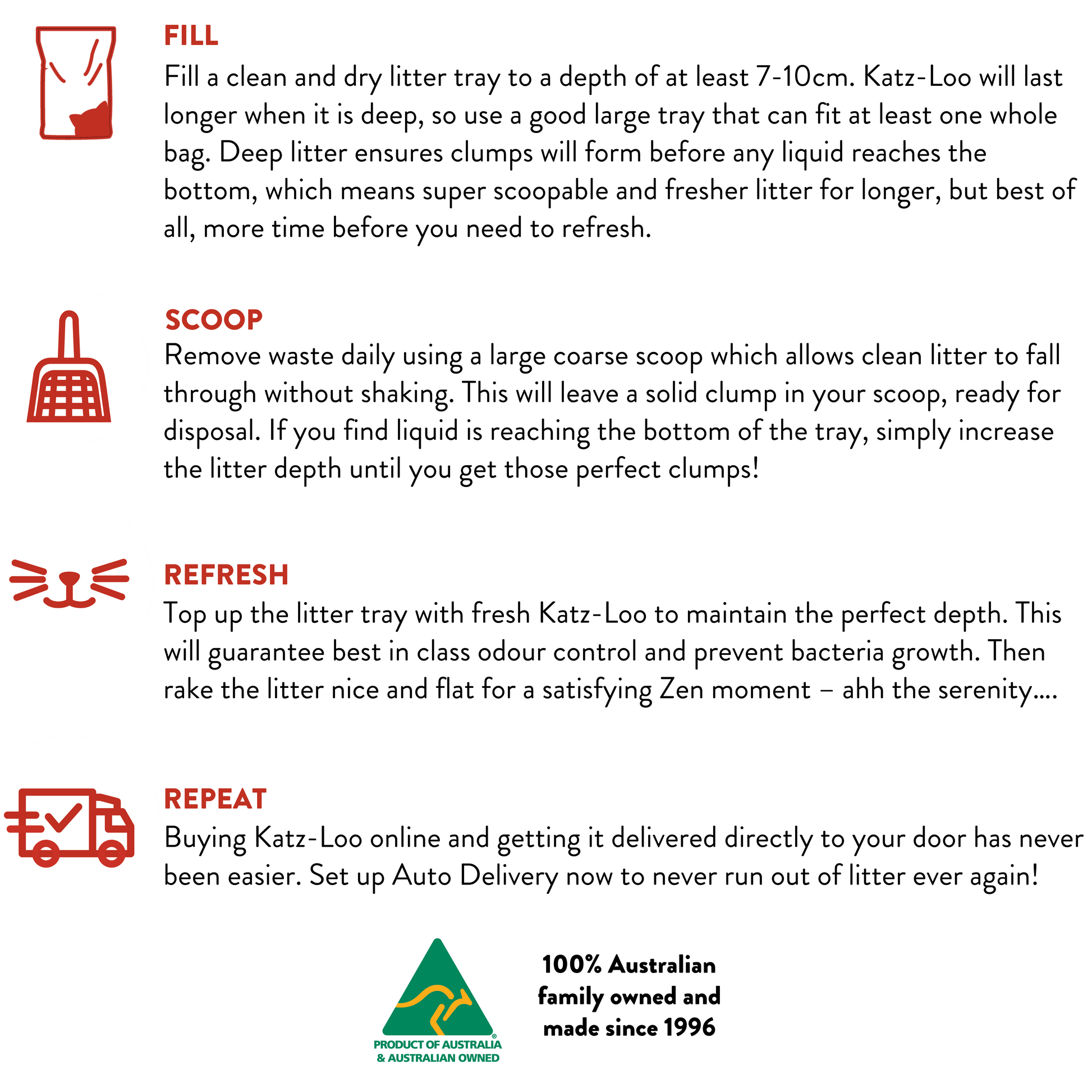 Katz-Loo Natural Clumping Cat Litter is Australia’s Best Value Cat Litter, proudly family owned and made in Queensland.